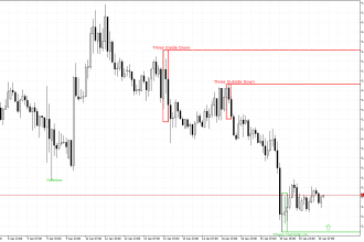Poziom ten został utworzony przez wzór Trzy wewnętrzne w dół. Wzór ten składa się z trzech japońskich świec: pierwsza świeca ma krótkie czarne ciało rzeczywiste, druga świeca ma również czarne ciało rzeczywiste i znajduje się całkowicie wewnątrz ciała pierwszej świecy, a trzecia świeca jest również czarna i zamyka się poniżej ciała drugiej świecy.